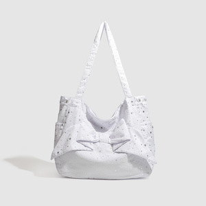 复古y2k辣妹单肩包女韩国小众蝴蝶结帆布包休闲百搭大容量托特包