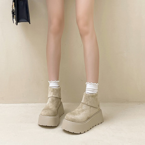 绒面短靴翻折厚底短筒靴女秋冬季时尚舒适复古百搭平底增高勃肯鞋