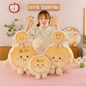 创意中秋可爱软萌表情月饼抱枕靠垫节日礼品跨境毛绒玩具抓机娃娃
