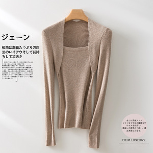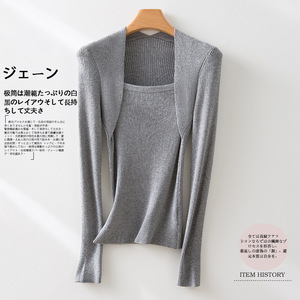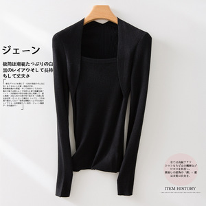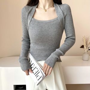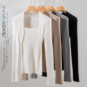 2025早秋新款羊毛混纺休闲时尚假两件针织衫修身方领打底衫上衣女