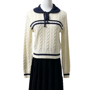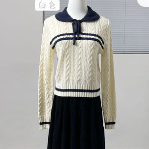 气质麻花蝴蝶结针织衫女装秋季新款学院风上衣外贸毛衣毛织衫工厂