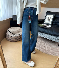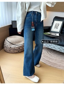 超好看微喇裤!早秋松弛感四面弹牛仔裤女显高九分毛边阔腿喇叭裤