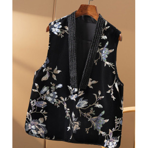 东方奢雅重工钉珠亮片新中式刺绣丝绒马甲垂感洋气直筒坎肩女外套