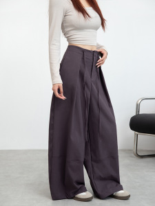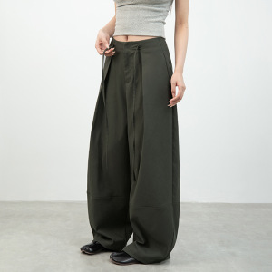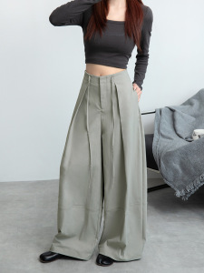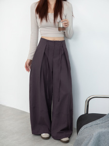 慵懒风阔腿裤女秋季高腰垂感休闲裤宽松设计感褶皱直筒拖地裤长裤