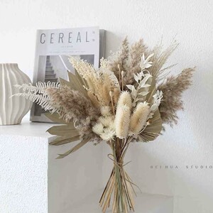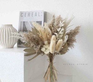 高级感插瓶大束干花客厅摆件真花芦柴芦苇蒲扇混搭干花花束永生花