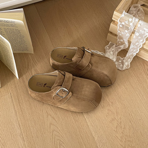 白色复古防滑厚底包头拖鞋女外穿2025新款秋季百搭增高半拖勃肯鞋