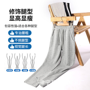320g华棉卫裤春秋款男女同款纯色宽松裤子耐磨高弹直筒平口长裤