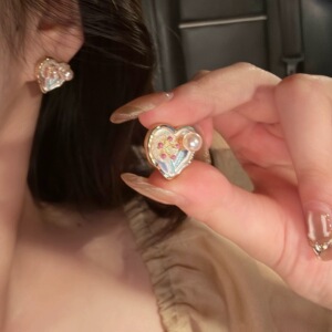 法式复古花朵珍珠爱心耳钉轻奢小众精致耳环莫奈花园油画风耳饰