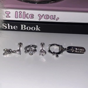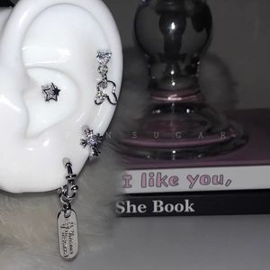 克罗十字架耳圈钛钢星星兔子耳骨钉耳蜗钉土星字母耳扣耳饰女耳环