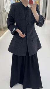 小蛮腰垫肩圆领单排多扣收腰设计小香风中长款双面尼羊毛大衣秋冬