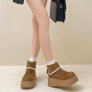 简约短靴厚底内增高雪地靴秋冬复古花边加厚保暖勃肯鞋短筒大棉鞋
