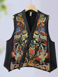 批发2025新款民族风复古重工刺绣中式国风马甲刺绣背心女国潮坎肩