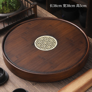 家用胡桃色储水式茶盘圆形茶托盘简约家居百搭茶台干泡盘蓄水式