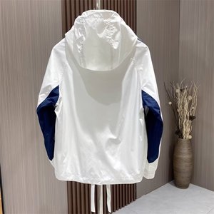 春季拼色条纹冲锋衣男士薄款百搭连帽上衣时尚帅气宽松休闲夹克男