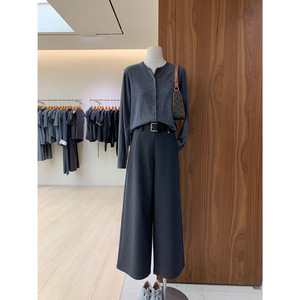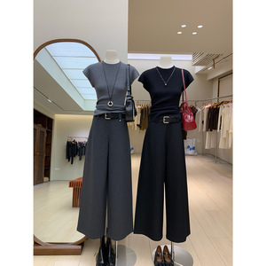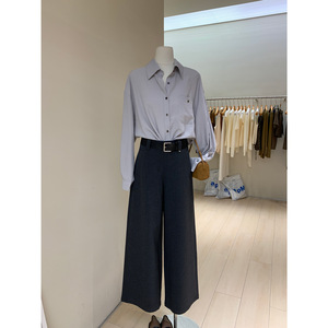 口碑高货垂顺抗皱阔腿休闲西裤直筒显瘦老钱风极简通勤长裤配腰带