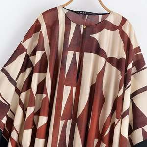 ZR外贸批发 欧美风女装 度假风时尚百搭宽松海洋印花长裙 1291058