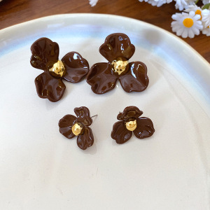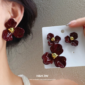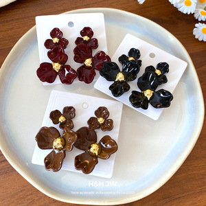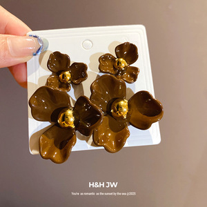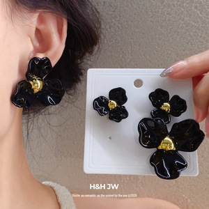 银针滴油亚克力花朵耳环女轻奢高级感耳钉时尚气质耳饰设计感小众