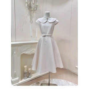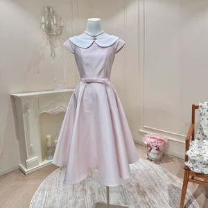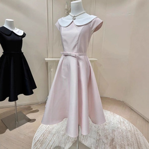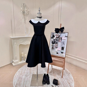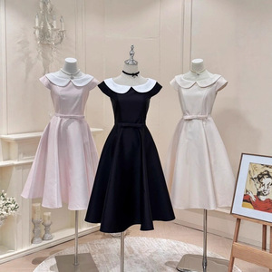 温莎小姐 法式简约温柔气质收腰娃娃领连衣裙赫本感公主长裙