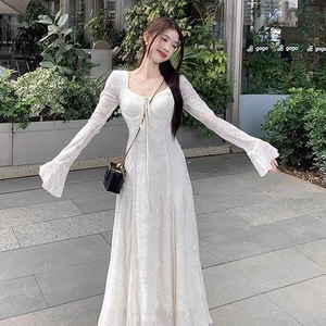新中式加绒加厚连衣裙女秋冬2025新款温柔风收腰显瘦蕾丝长袖长裙