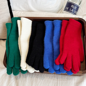 韩版东大门纯色针织毛线手套女士冬季防寒保暖时尚百搭露指可触屏