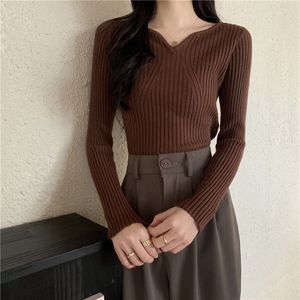 时尚ins风秋冬新款高级感气质修身毛衣内搭长袖针织v领打底衫女潮