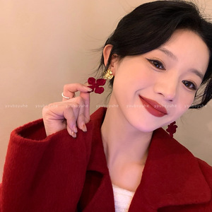 银针大圆环金属花朵耳环轻奢小众高级感耳圈夸张宴会气质耳饰批发