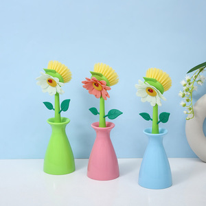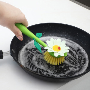 不脏手洗锅刷家用厨房花朵带瓢虫长柄洗碗刷子水槽灶台清洁刷批发