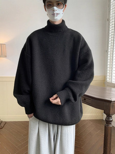 高领毛衣男秋冬季慵懒风针织衫男女潮牌感纯色保暖毛线衣外套