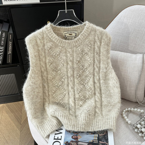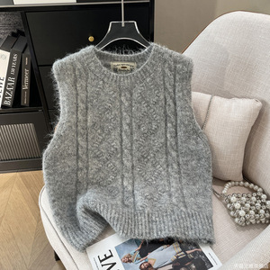 韩系软糯麻花针织马甲女春秋季新款加厚叠穿圆领毛衣背心马夹外搭