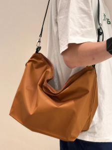 slouchy尼龙斜挎包女休闲单肩包牛皮中号大容量饺子包百搭手提
