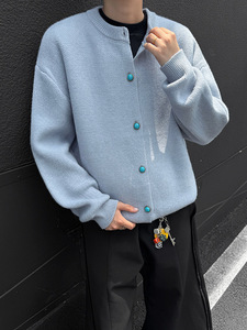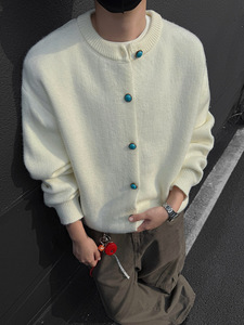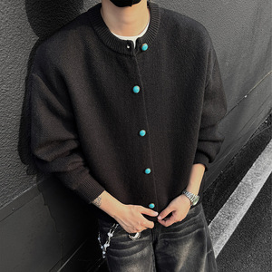 男士大码纽扣毛衣针织开衫外套百搭秋冬新款休闲保暖宽松上衣线衣