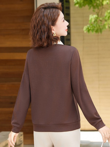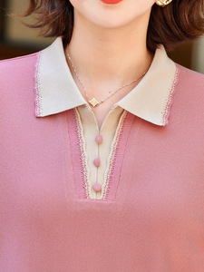 妈妈秋装时尚洋气衬衫2025新款中老年女装春秋针织翻领T恤打底衫