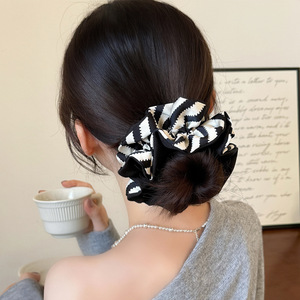 撞色简约文艺少女条纹大肠发圈褶皱学院风韩国头花头绳丸子头发绳