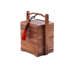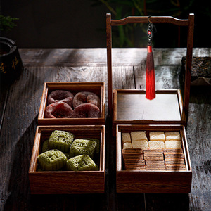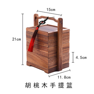 胡桃木手提篮食盒三层收纳点心提盒新中式茶盒礼品盒便携茶具户外