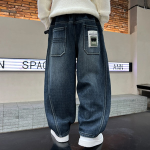 男童软牛仔裤2025新款中大儿童秋装蓝色痞帅气直筒裤宽松秋季裤子