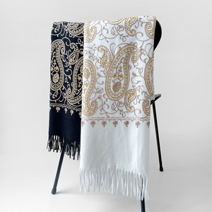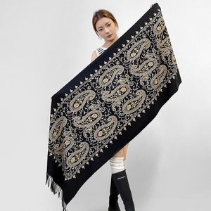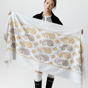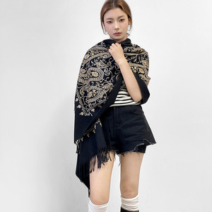 轻奢时尚仿羊绒披肩大腰果印花围巾双面刺绣流苏围巾欧美时尚披肩