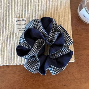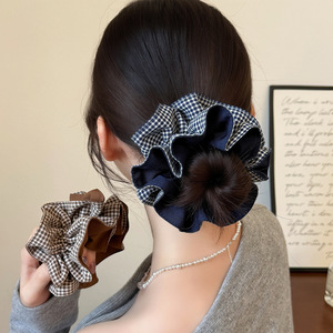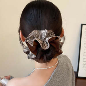 复古格纹木耳边褶皱头花发圈网红气质不伤发头绳扎马尾大肠圈头饰