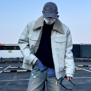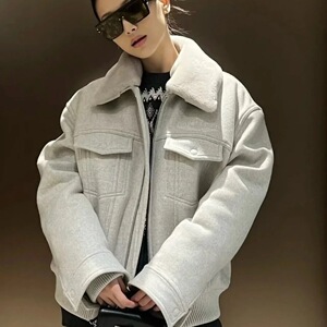 天花板品质25FW潮牌新款羊毛领绵羊毛束腰夹克外套男女同款潮