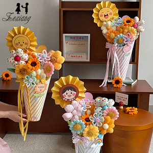 教师节快乐一体定型片加厚卡纸甜筒造型鲜花包装纸鲜花包装材料