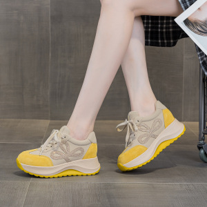 厚底阿甘鞋女2025秋季新款运动德训软底拼色休闲时尚百搭增高女鞋