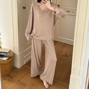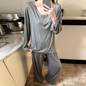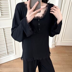 跨境外贸春秋新款睡衣女可爱蕾丝花边宽松长袖女款家居服批发套装