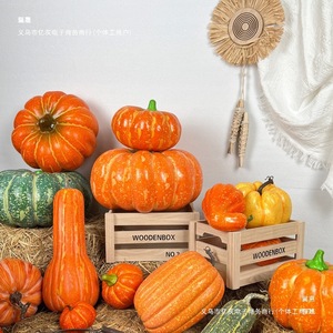 南瓜模型丰收节道具农家乐万圣节装饰蔬菜商场橱窗展厅摆件猫绢花