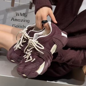 WM6欧洲站女鞋25秋时尚软反绒皮拼网圆头系带轻厚底八爪鱼老爹鞋