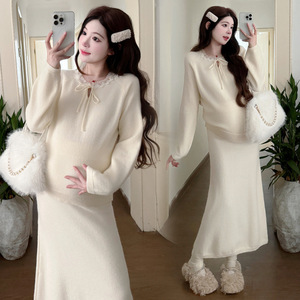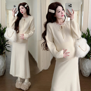 孕妇毛衣裙2025秋装简约舒适宽松慵懒文艺针织半身裙孕妇两件套