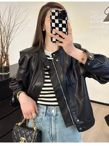 皮衣皮夹克女秋季薄款短款立领拉链复古港风街头风短外套女A6753