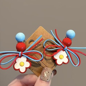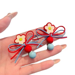 韩国东大门甜美红蓝撞色花朵蝴蝶结发夹刘海夹女生扎发碎发夹发饰