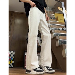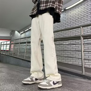 白色美式微喇牛仔裤男秋季新款显高显瘦男生窄版修身高街弯刀裤子