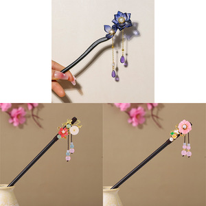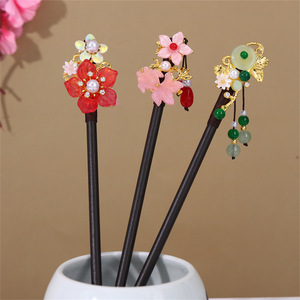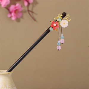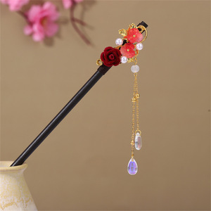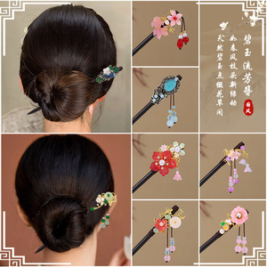 古风流苏发簪步摇木簪子仿黑檀木头饰盘发汉服配饰品挽发钗批发女