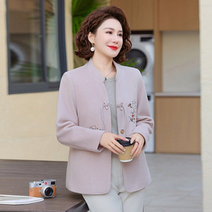 小个子妈妈秋装新款双面呢外套短款中老年女士春秋毛呢大码上衣薄