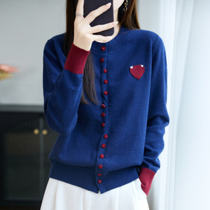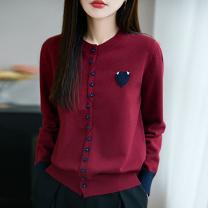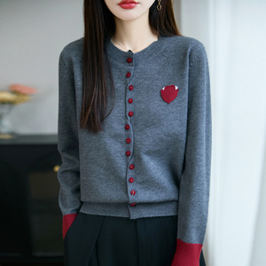 早秋爱心撞色针织开衫外套女2025新款春秋外搭洋气大码女装上衣